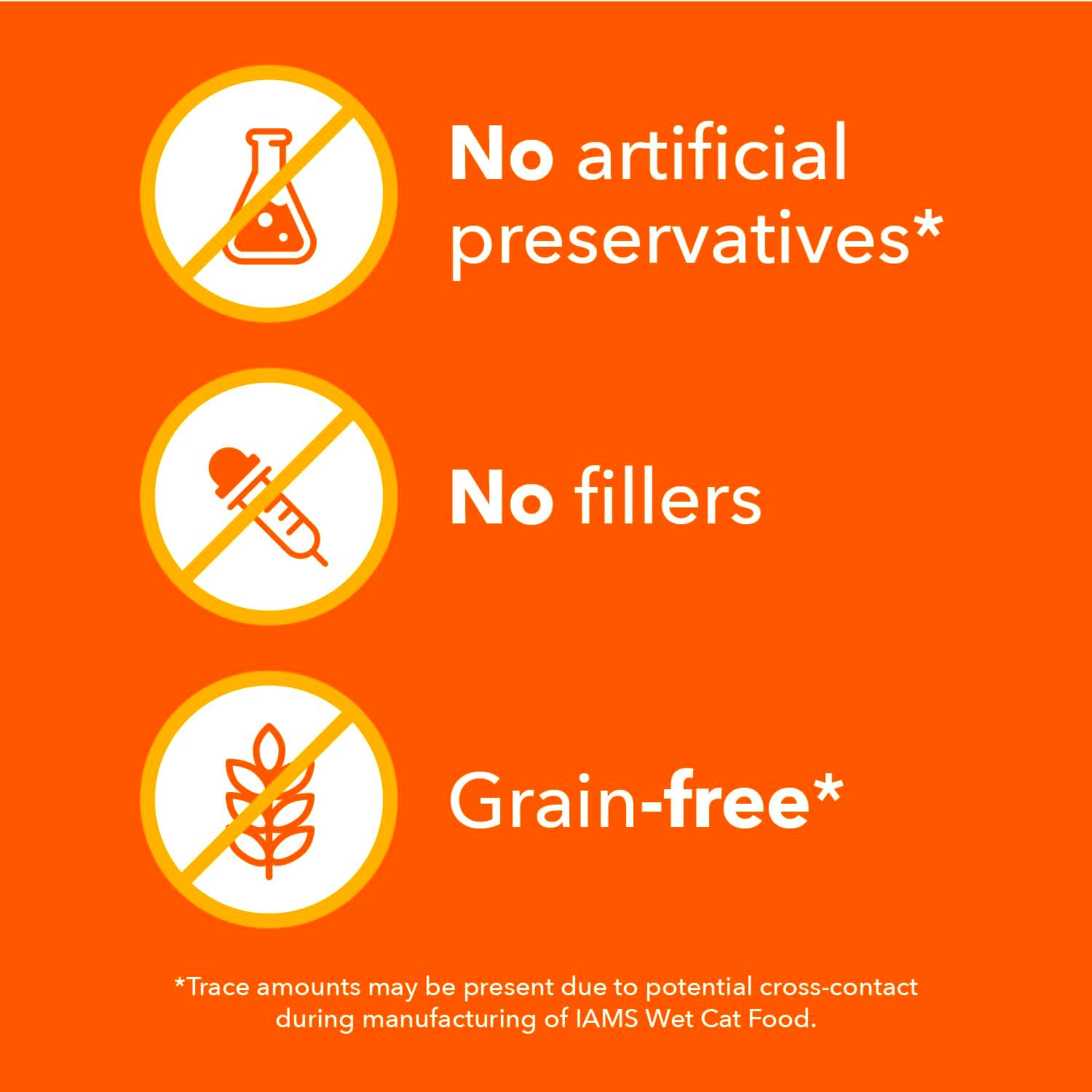 - Quality Recipe: IAMS grain-free (Trace amounts may be present due to cross-contact during manufacturing) wet cat food recipes are made with wholesome ingredients