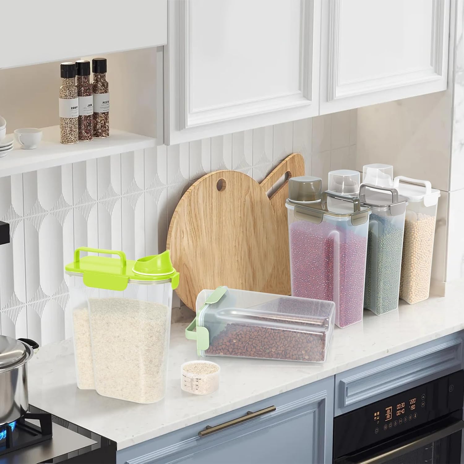 5-7Lbs Cat Dog Storage Container, Portable Pet Food Containers with Upgraded Large Spout and Cup, Small Animal Kibble Dispenser for Bird Seed, Oatmeal, Rice, Flour (1, Bright Green, 5L)