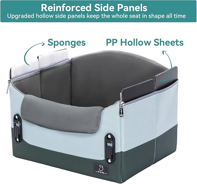 - Durable & Comfortable Dog Car Seat: Made from heavy-duty Oxford fabric with double-stitched seams for extra strength, this pet car seat combines durability with comfort. The soft fleece lining, plush pillow, and sponge-supported base provide optimal support for long trips