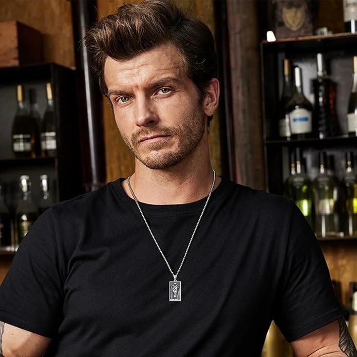 - ★ PRODUCT DIMENSIONS ★ Stamped with "S925", this 925 sterling silver tarot jewelry is hypoallergenic and friendly to sensitive skin. Color: oxidized silver. Chain: adjustable stainless steel rolo chain. Length: 22" to 24". Tarot Pendant: 0.61" (15.5 mm) wide, 1" (25.5 mm) long. Pendant Weight: 4.96g. Total Weight: 12.36g. Packing: branded jewelry gift box.
