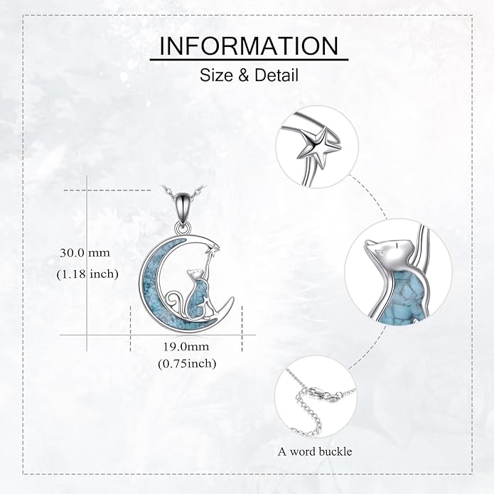 - 🐱【Design】The cat represents Agile and cute, and this necklace is made of a special natural stone called turquoise. The cat stands on the moon and is surrounded by natural stones, creating a romantic atmosphere and natural elements. Hoping this cat necklace can bring you good luck.