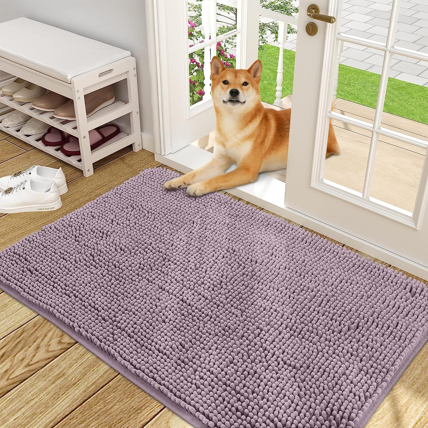 OLANLY Dog Door Mat for Muddy Paws 48x30, Absorbs Moisture and Dirt, Absorbent Non-Slip Washable Doormat, Quick Dry Chenille Mud Mat for Dogs, Entry Indoor Entryway Carpet for Inside Floor, Deep Plum