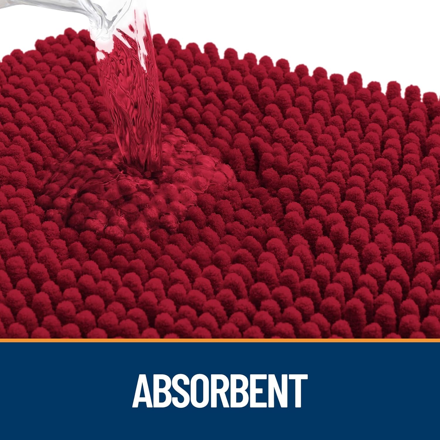 OLANLY Dog Door Mat for Muddy Paws 47x17, Absorbs Moisture and Dirt, Absorbent Non-Slip Washable Doormat, Quick Dry Chenille Mud Mat for Dogs, Entry Indoor Entryway Carpet for Inside Floor, Red