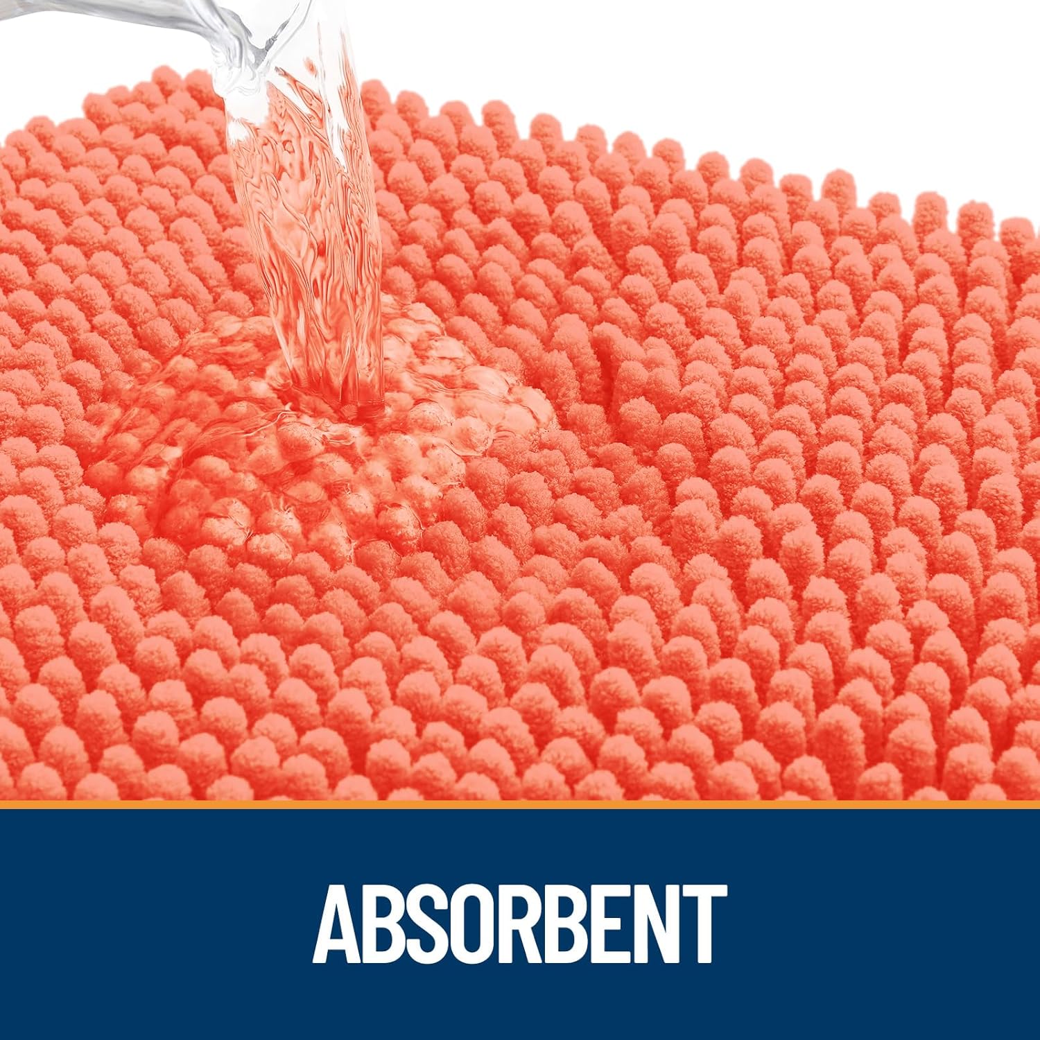 OLANLY Dog Door Mat for Muddy Paws 59x32, Absorbs Moisture and Dirt, Absorbent Non-Slip Washable Doormat, Quick Dry Chenille Mud Mat for Dogs, Entry Indoor Entryway Carpet for Inside Floor, Coral