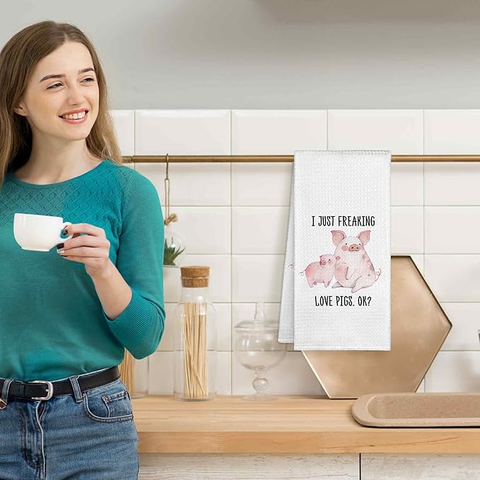 I Just Freaking Love Pigs Kitchen Towels Decorative Gifts for Pig Lovers 16x24, Pig Dish Towel Cloths Dishcloths Tea Towel, Pig Bathroom Kitchen Hand Towel Decor