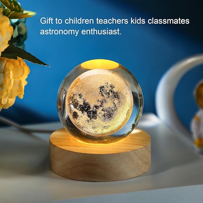 - This crystal ball, made of high transparency K9 crystal, has a diameter of 2.36 inches, making it perfect for display on a desk shelf or nightstand for a Warm ambiance.The 3D Moon is Highly Clear and Durable for a Life Use, Image will Never Lose Luster