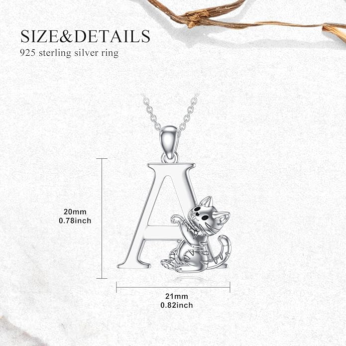 LONAGO Cat Initial Pendant Necklace Silver A to Z Letters Alphabet Necklace Gift for Women