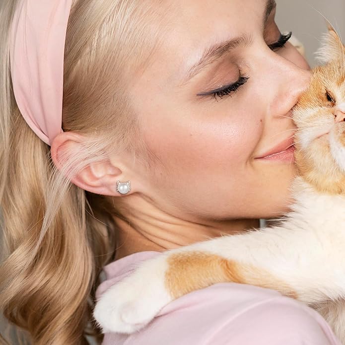 - 【Earrings Size】: The size of the cat earrings for women is 10mm, and the pearls are 7.5~8mm freshwater cultured pearls; Light weight, comfortable to wear