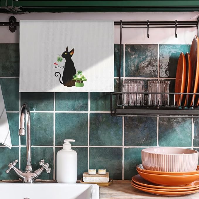 Black Cat Gifts,Shamrock St. Patrick's Day Cat Dish Towels,Cat Kitchen Towels,Cat Hand Towel,Cat Mom Gifts,Gifts for Cat Lovers for Women,Cat Lady Gifts,Crazy Cat Lady Gifts,Black Cat Gifts for Women