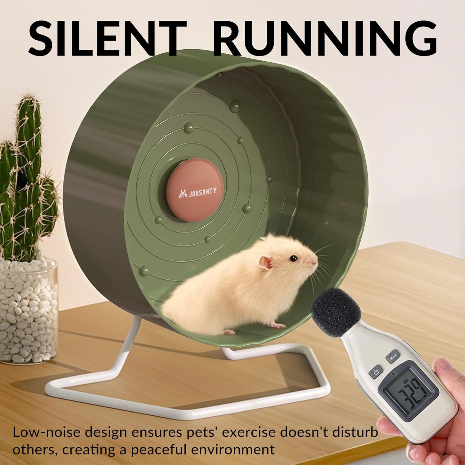 8.4" Silent Hamster Wheel, Non-Slip Track, Exercise, Release Stress, Relieve Anxiety, Adjustable Height Stand, for Syrian Dwarf Hamster, Gerbil, Mice, Other Small Medium Sized Pets, Green