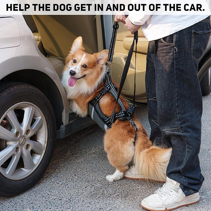 - 2. EFFORTLESS CAR & STAIR ACCESS + DUAL-HANDLE LIFTING Padded handles let two caregivers safely lift dogs into vehicles or over stairs. Durable straps adjust for small to large breeds.
