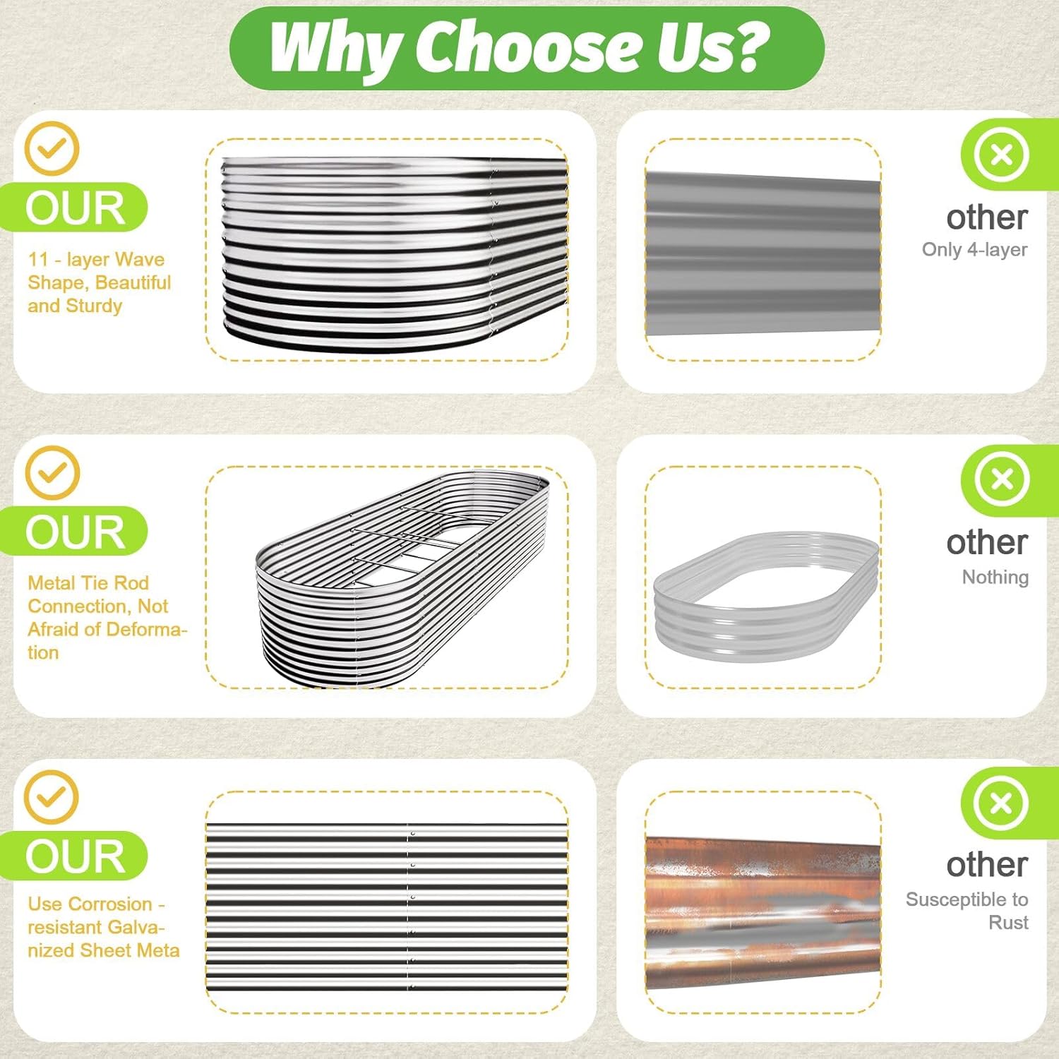 FRIZIONE 2pcs 9 in 1 Tall 8x2ft Galvanized Raised Garden Bed Outdoor,Steel Garden Bed for Vegetables,Above Ground Garden Box for Flower,Metal Raised Beds for Gardening