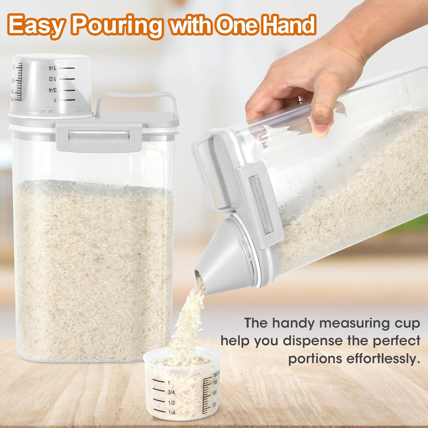 - DURABILITY: The rice storage container is made of BPA-Free material and sturdy construction, providing a healthy and convenient storage solution for the refrigerator, pantry, or anywhere your foods need to stay fresh and organized.