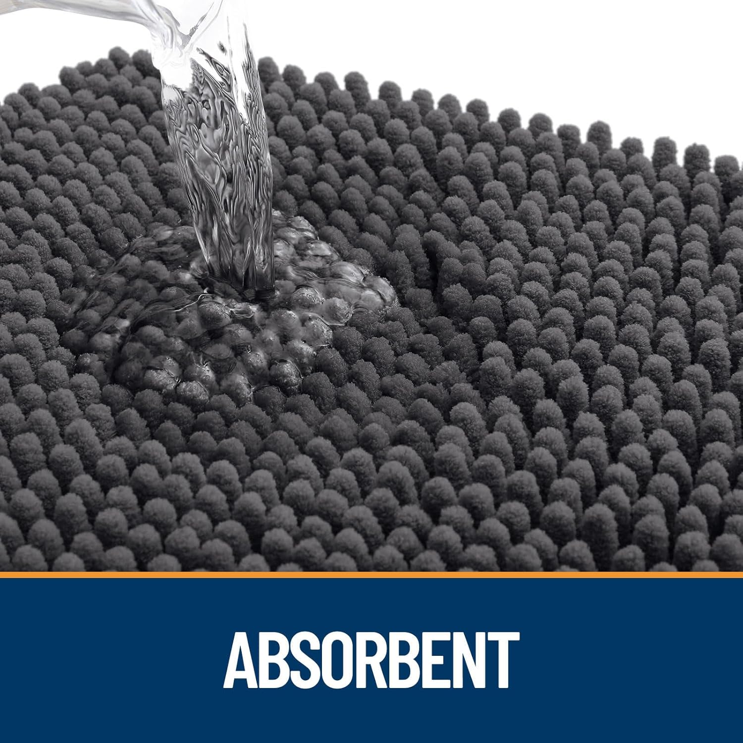OLANLY Door Mat for Muddy Dog Paws 47x24, Ultra Absorbent Chenille Mud Doormat with Paw Print Design, Non-Slip Washable Doormat for Indoor Entryway, Quick-Dry Pet Bed Mats for Dirty Dogs, Dark Grey