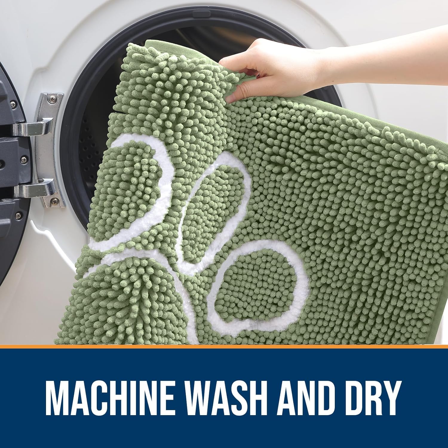 OLANLY Door Mat for Muddy Dog Paws 59x35, Ultra Absorbent Chenille Mud Doormat with Paw Print Design, Non-Slip Washable Doormat for Indoor Entryway, Quick-Dry Pet Bed Mats for Dirty Dogs, Sage Green