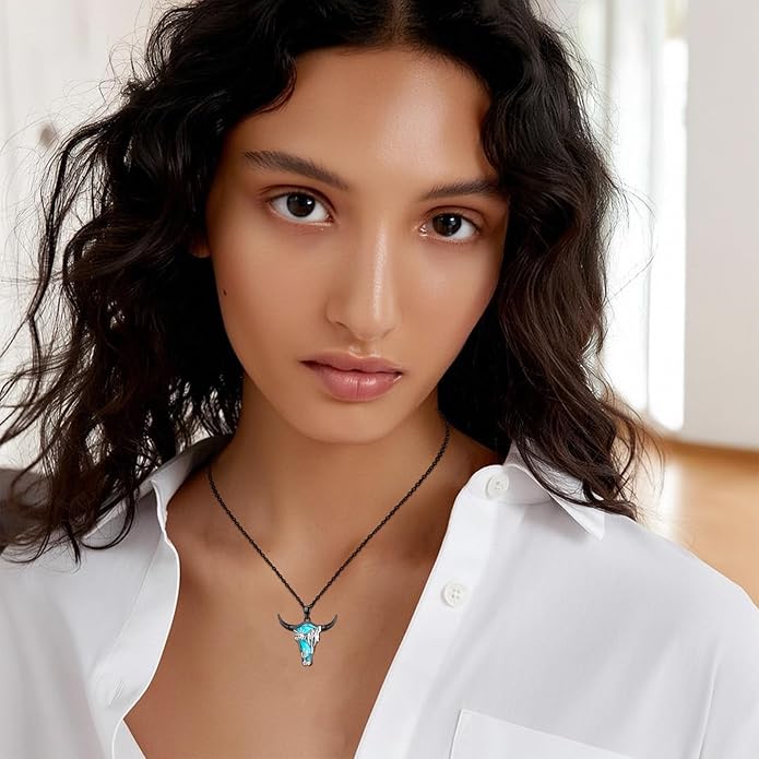 - Country Jewelry Material: This cow skull head necklace is made of 925 sterling silver, Nickel-free, Lead-free, Cadmium-free,Hypoallergenic, very friendly for sensitive skin.