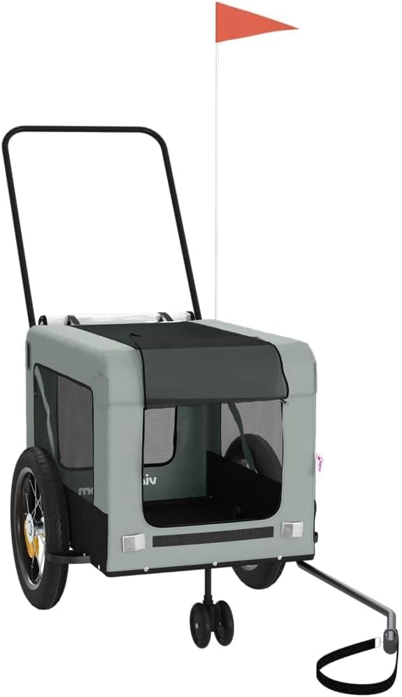Tidyard Pet Bike Trailer Gray and Black Oxford Fabric and Iron Pet Bicycle Carrier, Animal Bike Stroller for Cat, Puppy, Dog, Outdoor, Travel Style C