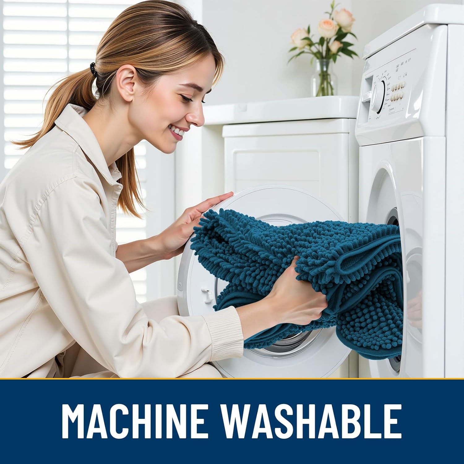 Smiry Dog Door Mat for Muddy Paws 36x24, Absorbs Moisture and Dirt Doormat, Non-Slip Washable Quick Dry Chenille Front Door Mat Indoor Entrance, Entryway Carpet for Inside Floor, Atlantic Blue