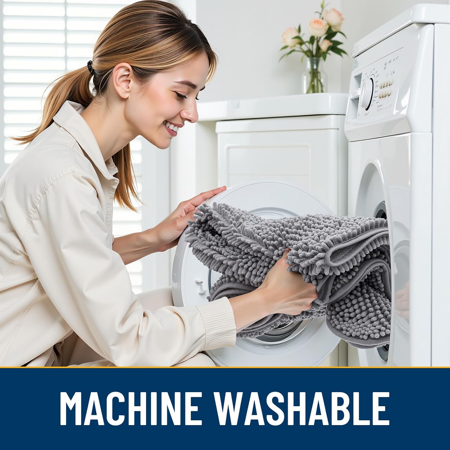 Smiry Dog Door Mat for Muddy Paws 47x32, Absorbs Moisture and Dirt Doormat, Non-Slip Washable Quick Dry Chenille Front Door Mat Indoor Entrance, Entryway Carpet for Inside Floor, Grey