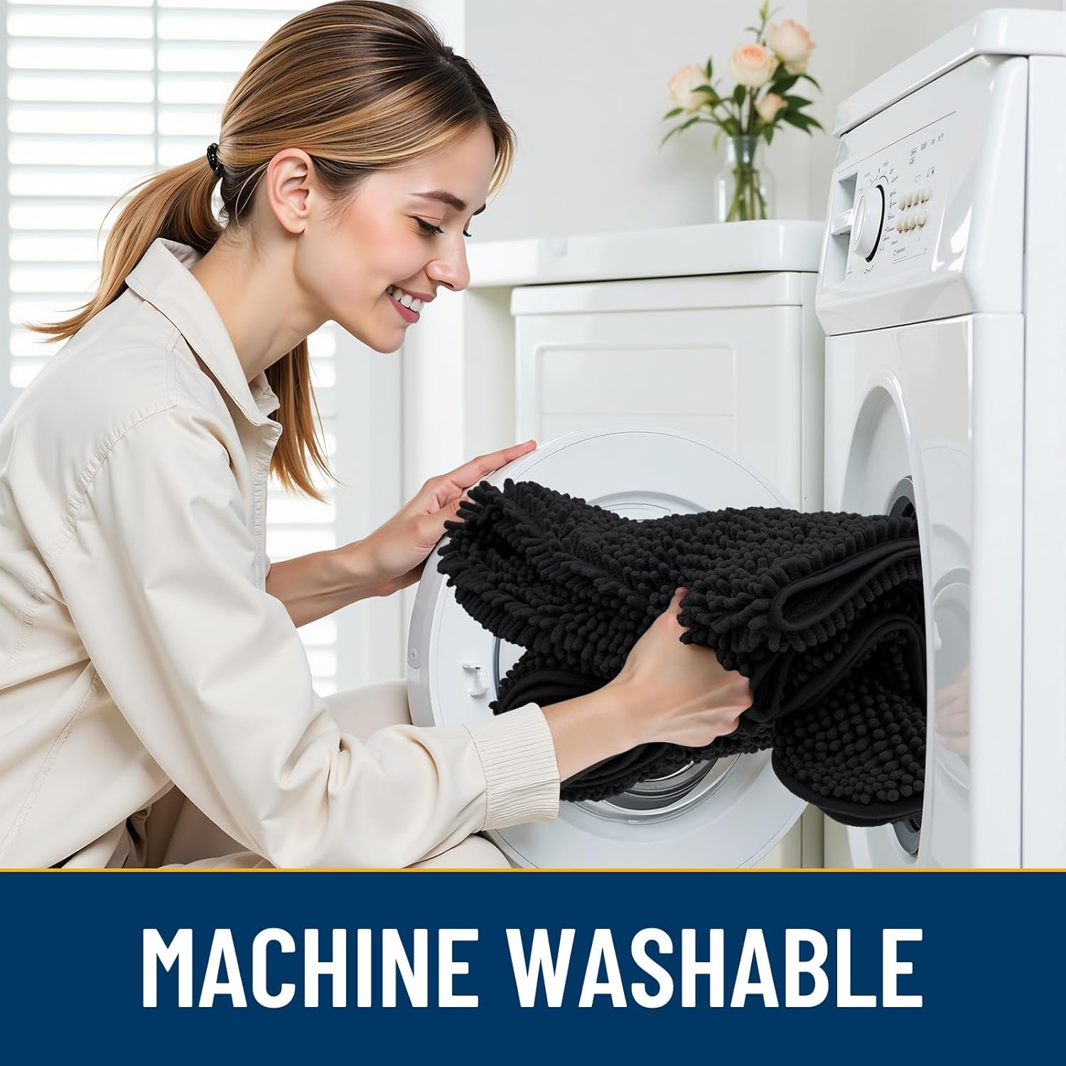 Smiry Dog Door Mat for Muddy Paws 24x16, Absorbs Moisture and Dirt Doormat, Non-Slip Washable Quick Dry Chenille Front Door Mat Indoor Entrance, Entryway Carpet for Inside Floor, Black