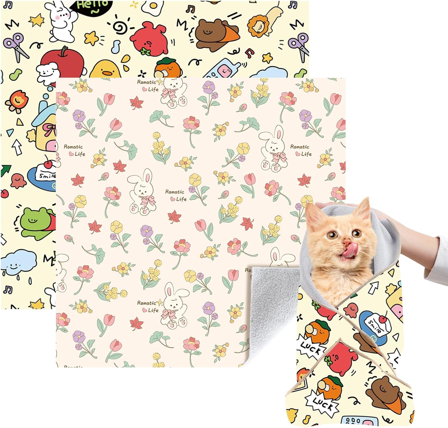 Cat Grooming Wrap, 2pcs [XL+XXL] Cat Restraint Wrap for Nail Clipping, Ear Cleaning, and Teeth Brushing, Self-Adherent, Anti-Bite, Anti-Scratch, Anti Scratch, Pink+Yellow