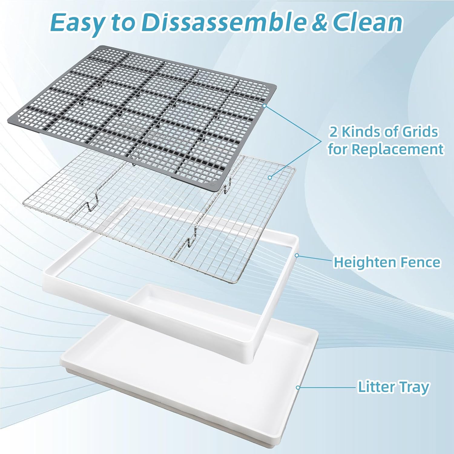 - Low Entrance Design: Small animals's legs and feet are short, this low edge large rabbit litter box with metal grid let's them get up and down so much easier; Wonderful low entry (on all sides) perfect for arthritics rabbit and senior small animals that they doesn't have to launch himself to get over the sides, since they're not very deep!!!!