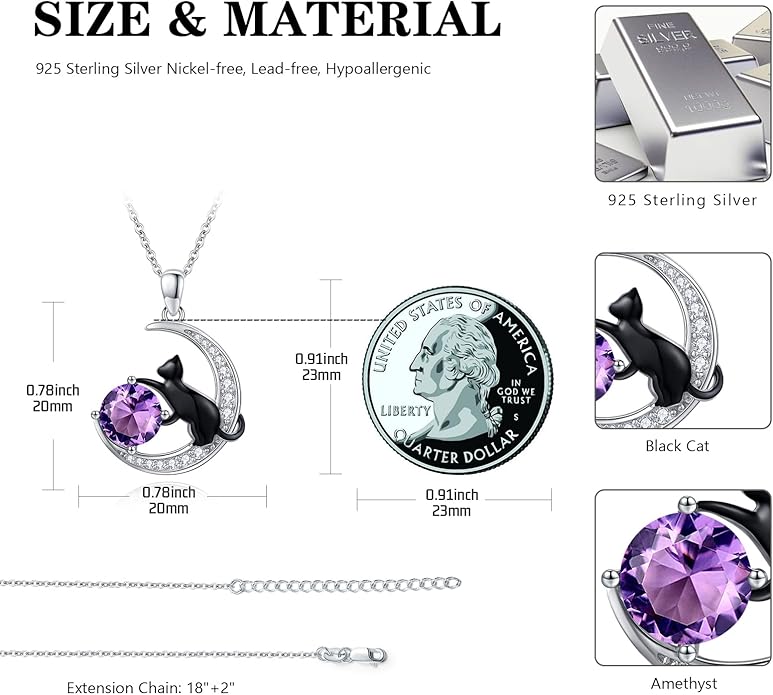 - Material: The black cat necklace is made of 925 sterling silver with Amethyst, no nickel, no lead, no cadmium and hypoallergenic, especially suitable for people with sensitive skin