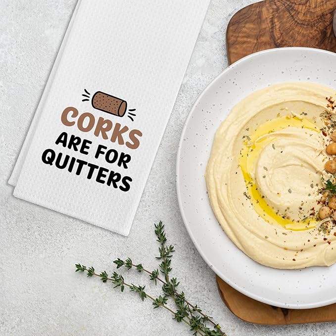 - Unique Design: Our funny kitchen towel with saying "Corks are for Quitters". The simple yet cute text patterns can bright up your kitchen and surprise your family and friends. It's a perfect kitchen gift for your favourite chef.