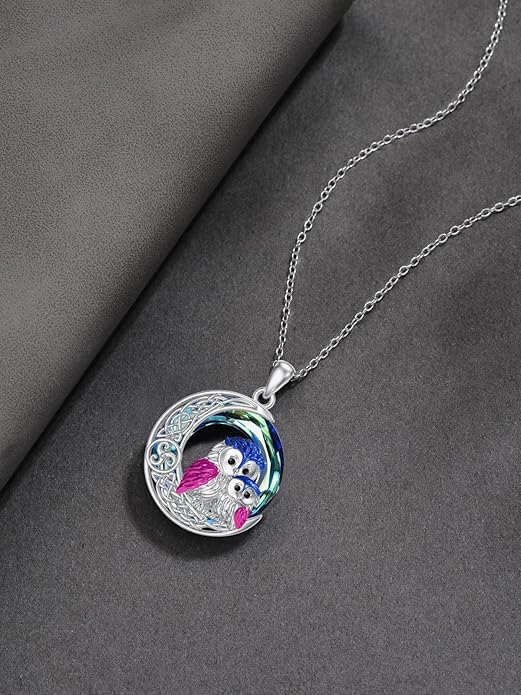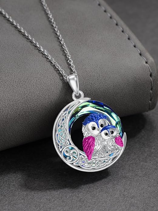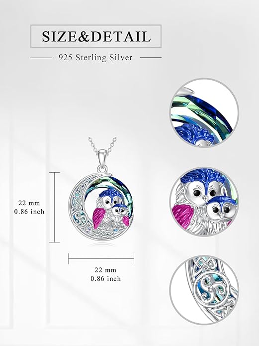 - Sterling Silver Owl Pendant Necklace: Owl pendant and celtic moon made of 925 sterling silver,with a sparkling crystal