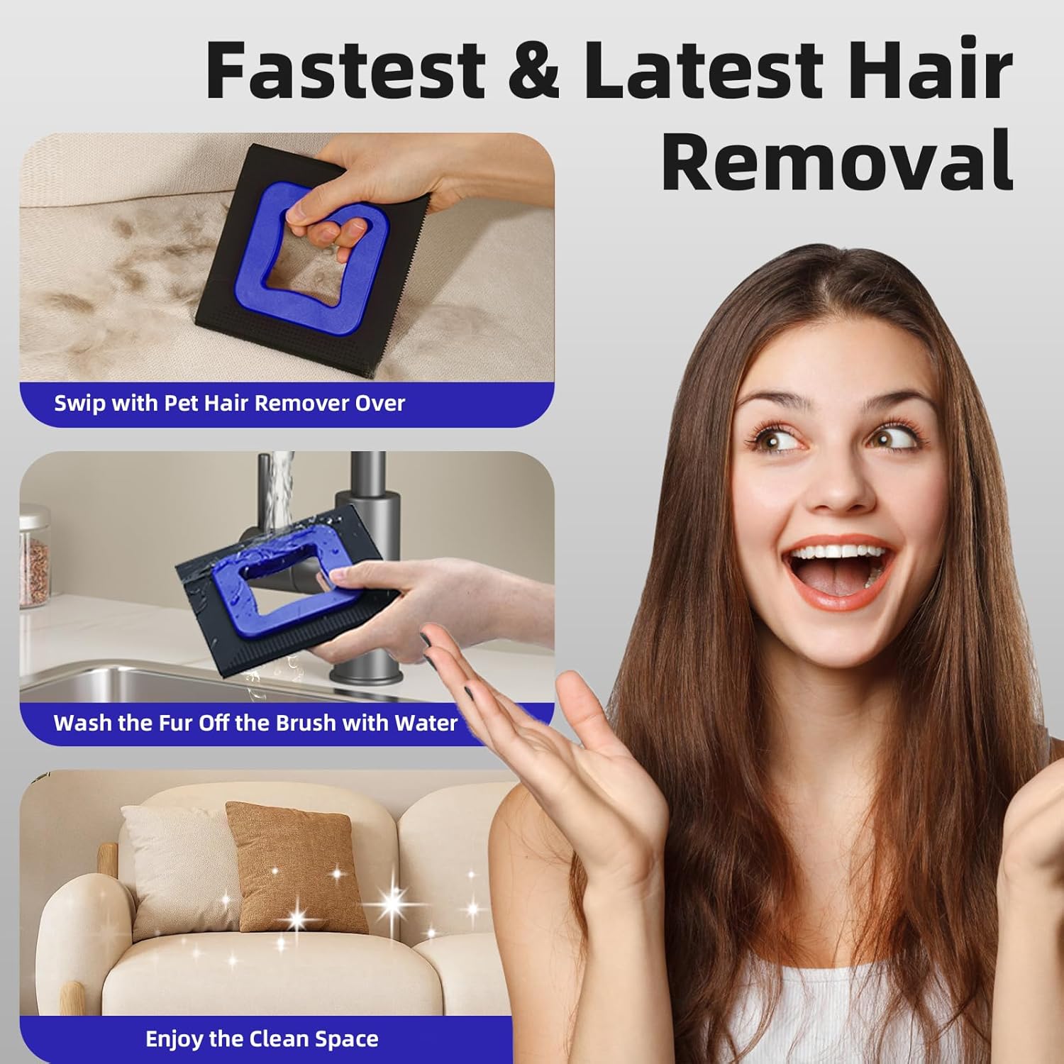 - Effortless Pet Hair Removal: Easily tackle pet hair! Square tool with coarse brush for large areas and fine brush for short hairs ensures thorough cleaning. Perfect for pet owners wanting a tidy home without the hassle.