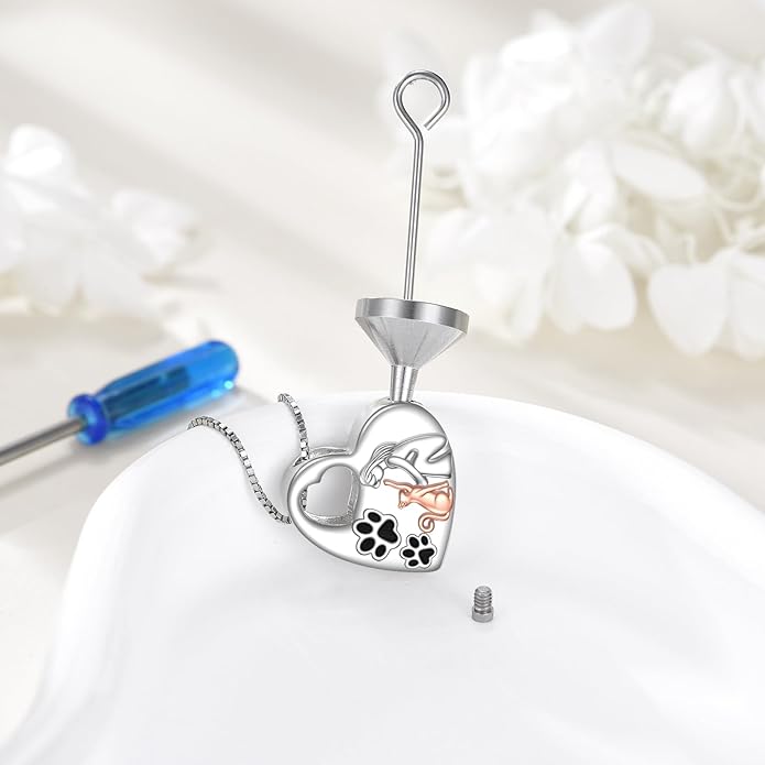 - ❤Urn Necklace for Ashes❤ The 925 sterling silver pet ashes necklace can hold a small amount of ashes of your loved pet. May this pet memorial necklace carry the memories of your pet, keep him around forever, and bring you comfort.