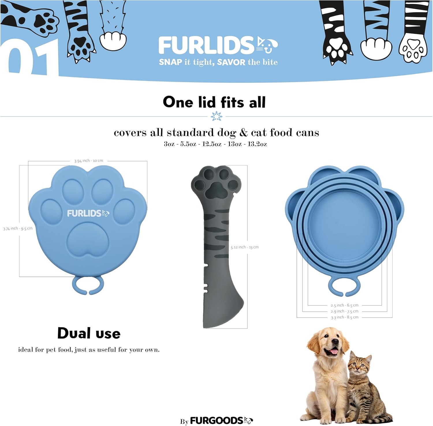 - ~ Trusted Pet Food Storage Solution ~ FurLids silicone pet food can lids, covers, caps & toppers keep dog food, cat food, wet food, wetfood, catfood fresh & sealed in the fridge, refrigerator or air tight storage containers. Essential spill-proof, reusable, dishwasher safe accessories & gadgets for pets.
