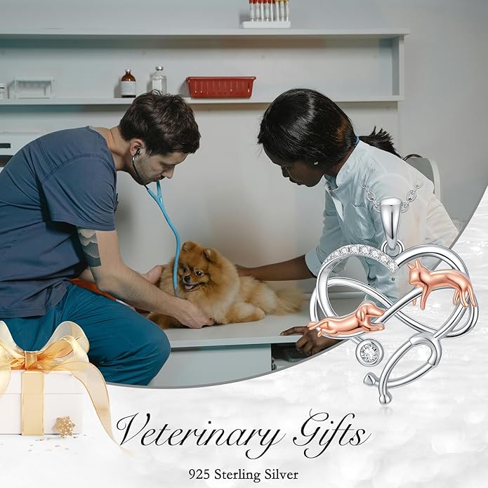 - 【Dog Cat Necklace for Veterinarians】 This necklace embodies the commitment and love veterinarians have for their furry patients. The heart symbolizes compassion, while the infinity-shaped stethoscope represents the endless care and dedication provided by veterinary professionals to improve the lives of animals