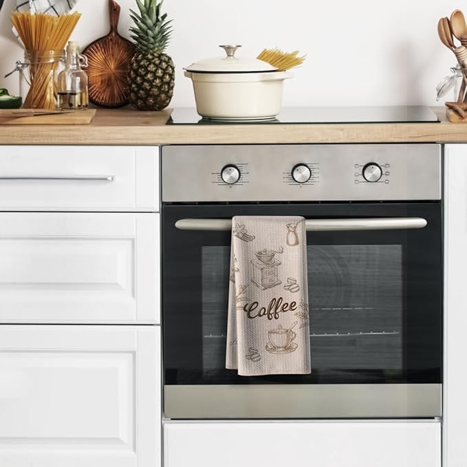 Coffee Themed Kitchen Towels,Funny Joked Bar Dishcloth,16"X24"Inch,Absorbent Drying Hand Towel, Gifts For Café Lovers,Neighbor,Wife,Women,Hostess,New Home,Mom,Housewarming On Christmas Mother's Day