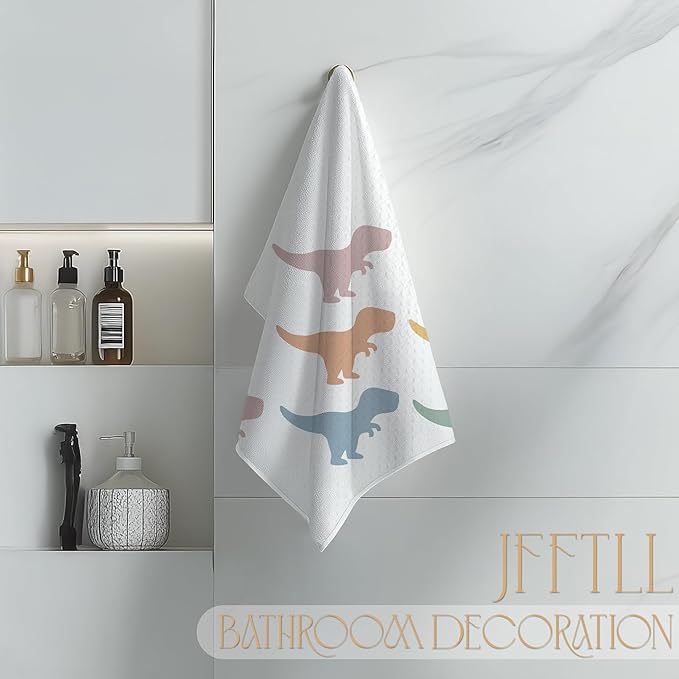 Colorful Dinosaur Hand Towels for Kid Bathroom, Dinosaurs Boys Bathroom Decor, Dinosaur Gifts Kitchen Towels, Dinosaurs Decor Dish Towels for Kitchen Drying, 16x24 Inch