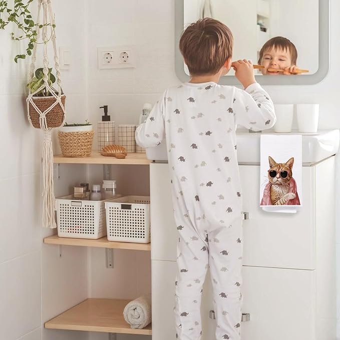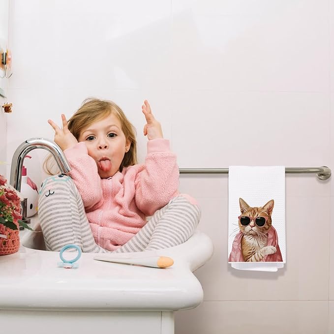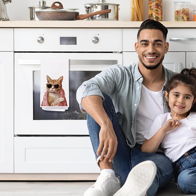 Trendy Tabby Cat Kitchen Towels, Orange Cat Lovers Mom Lady Gifts Decorative Dish Tea Towels for Kitchen, Cute Kitten Kitty Hand Towels for Bathroom, 16x24 Inch