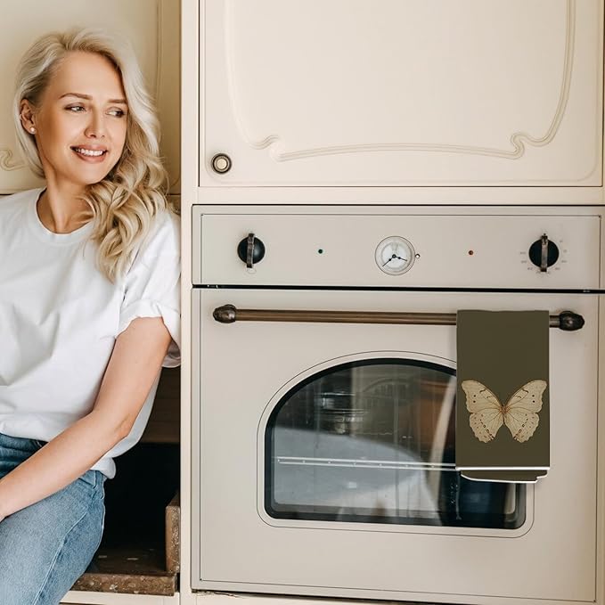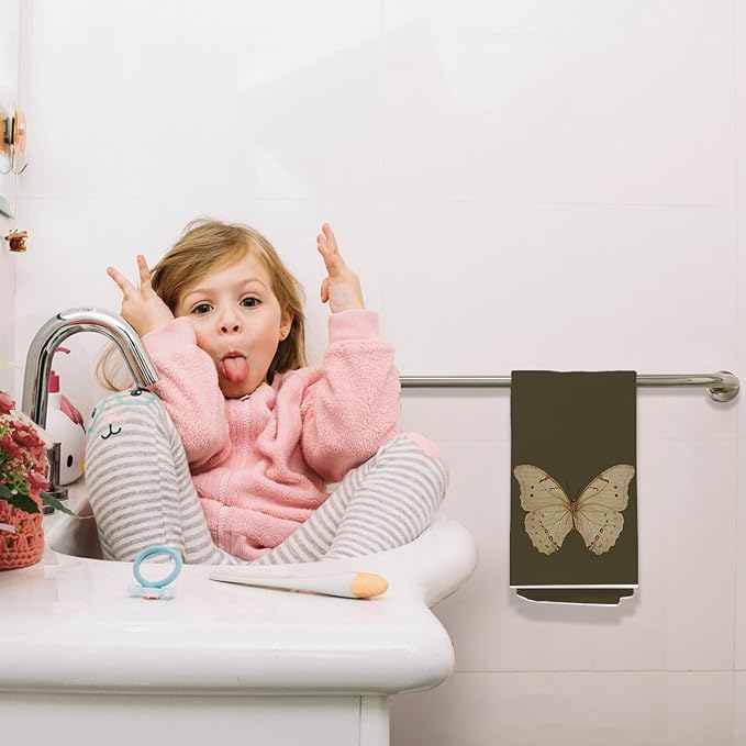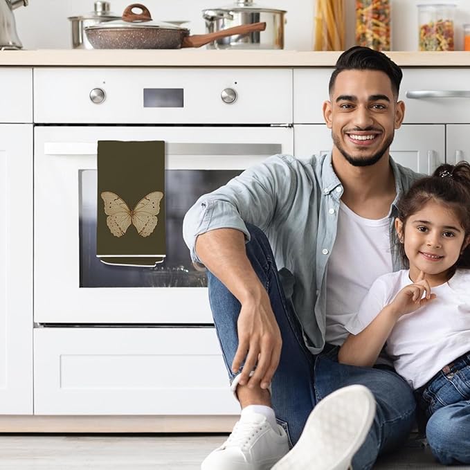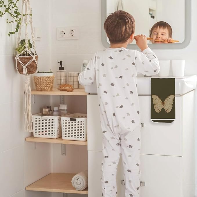 Vintage Butterfly Kitchen Towels, Cottagecore Dark Green Butterfly Decorative Dish Tea Towels for Kitchen, Antique Insect Moth Hand Towels for Bathroom, 16x24 Inch