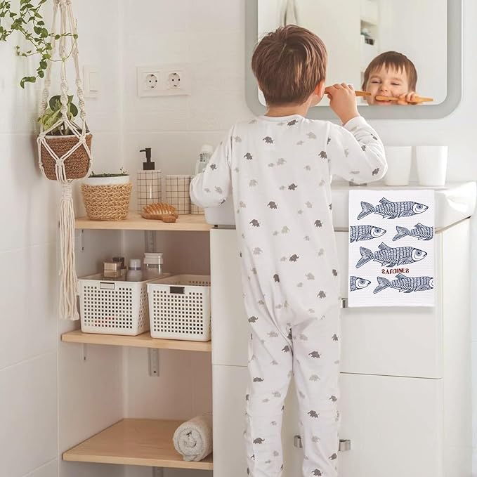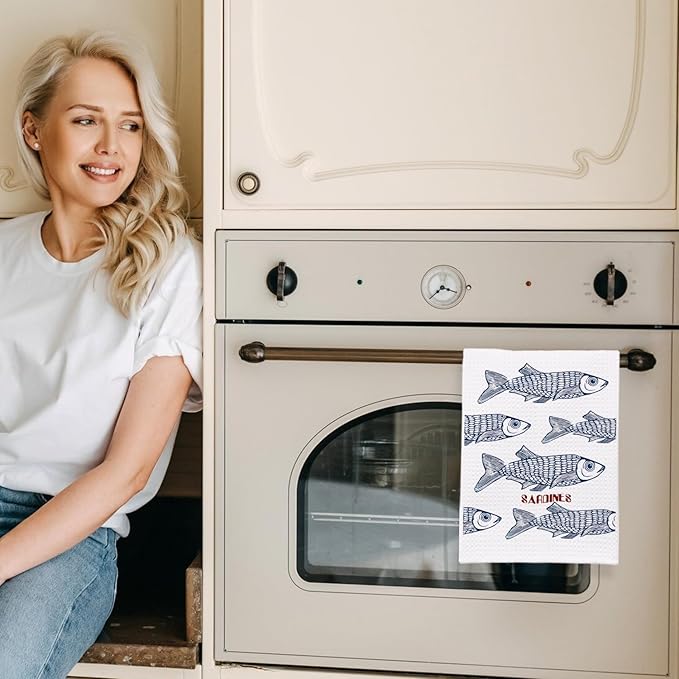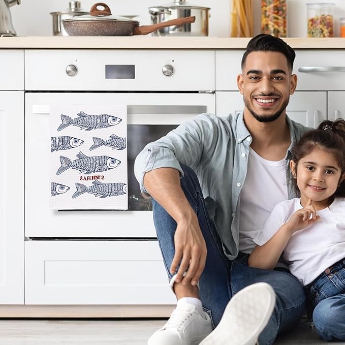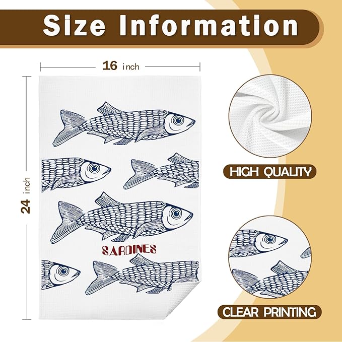 Sardine Fish Hand Towels, Sardine Decor Dish Tea Towels for Kitchen, Nautical Fishing Hand Towels for Bathroom, 16x24 Inch