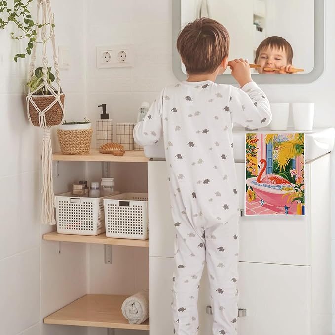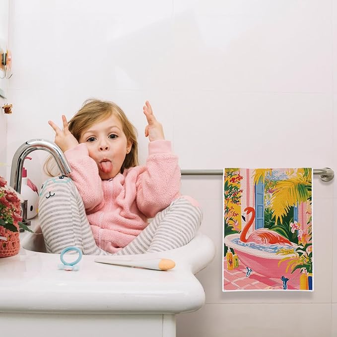 Flamingo Hand Towels for Bathroom, Trendy Maximalist Tropical Botanical Flamingo Hand Towels for Bathroom Decor, 16x24 Inch