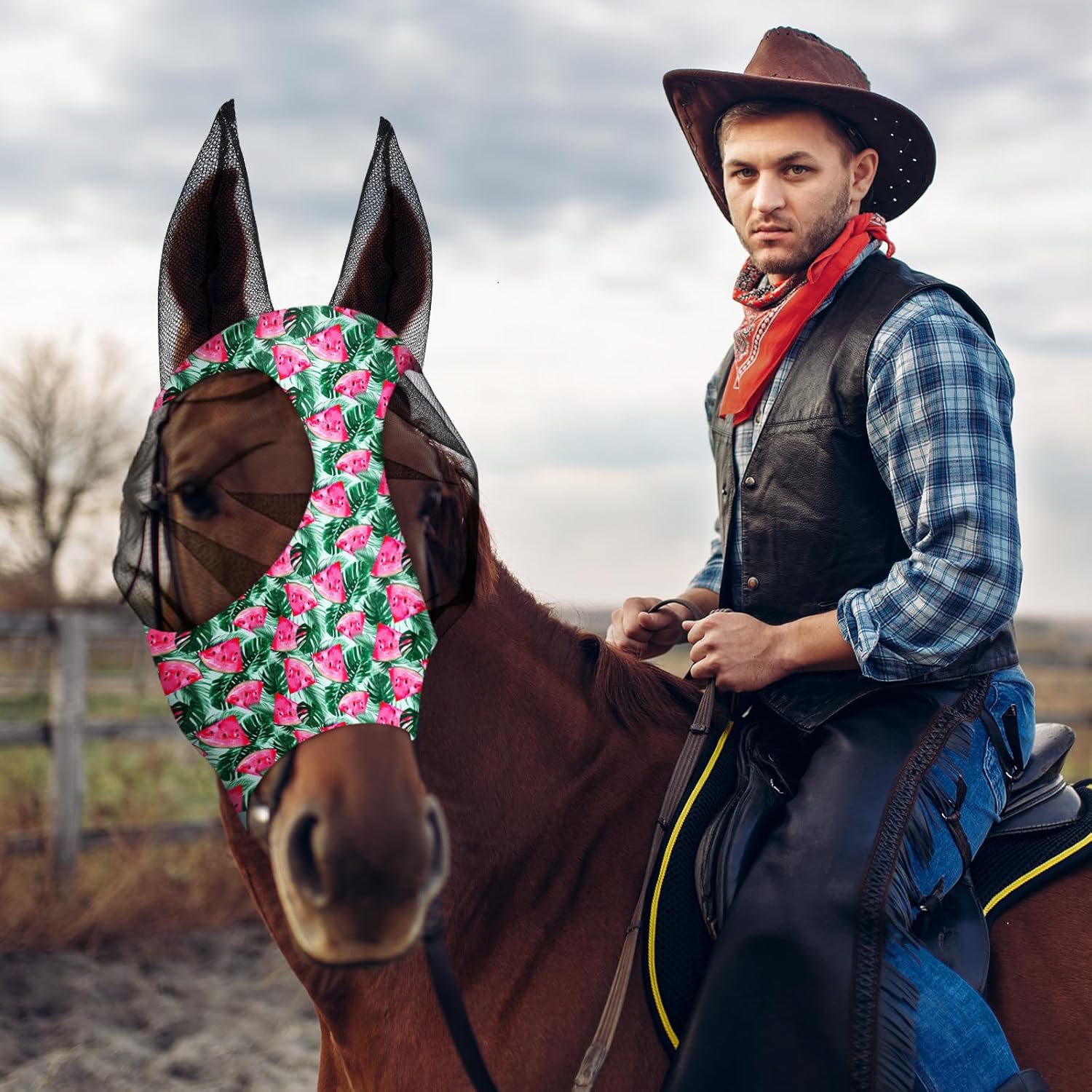 Frienda 4 Pieces Horse Fly Masks with Ears Face Covering UV Protection from Insect Pests Elasticity Smooth Comfortable Mesh Horse Mask Accessories(Fruit,Medium)