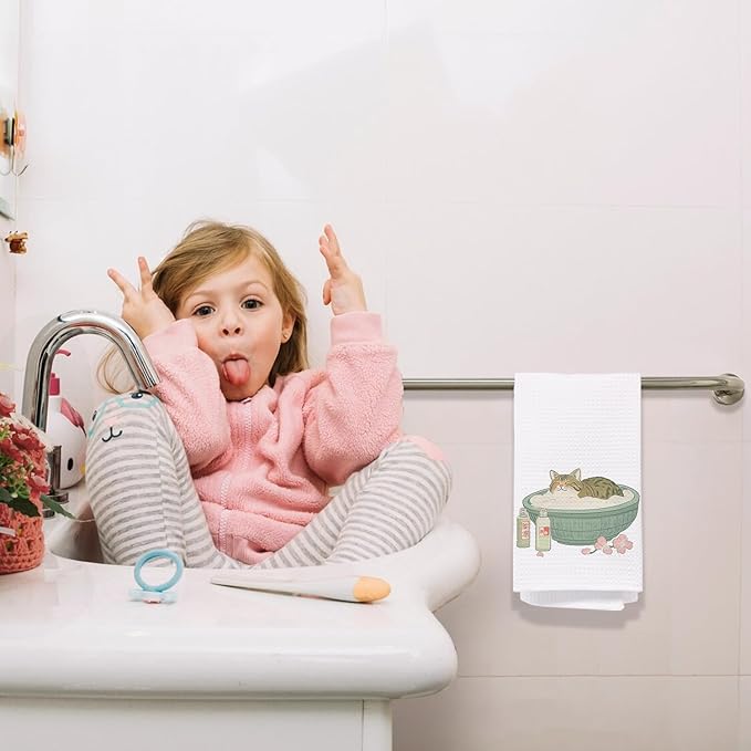 Cute Orange Tabby Cat Bathroom Hand Towels, Cat Lover Gifts, Japanese Bathtub Kitten Bathing Decorative Hand Towels for Bathroom Decor, 16x24 Inch
