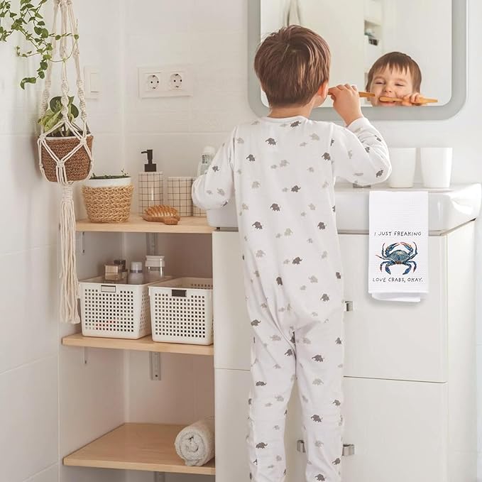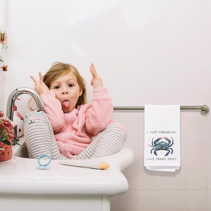 Crab Lover Gifts Kitchen Towels, I Just Freaking Love Crabs Decorative Dish Tea Towels for Kitchen, Coastal Beach Nautical Hand Towels for Bathroom, 16x24 Inch
