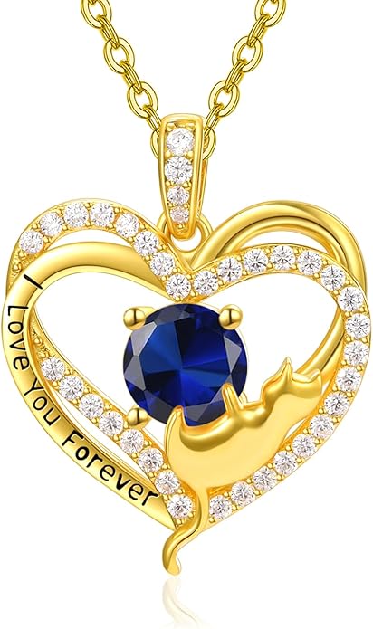 - 【Black Cat Necklace】The cute black cat embraces the sapphire jewelry, symbolizing love and companionship; The edge is also engraved with 'Forever Love You', symbolizing love and commitment. A romantic birthstone necklace gift that is perfect for wives, girlfriends, mothers, grandmothers, daughters, and more.