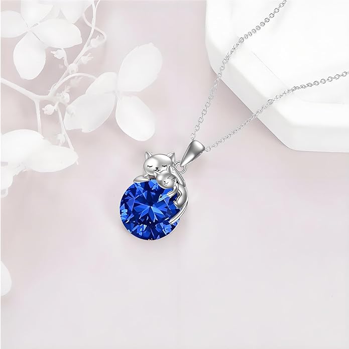 - 🐱 Design: The necklace is made of 925 sterling silver, with intricate detailing on the cats. The smaller cat is delicately cradled in the larger cat's paws, symbolizing love and protection. The September birthstone adds a pop of color and personalization to the piece. Show your loved one how much you care with this meaningful cat necklace.