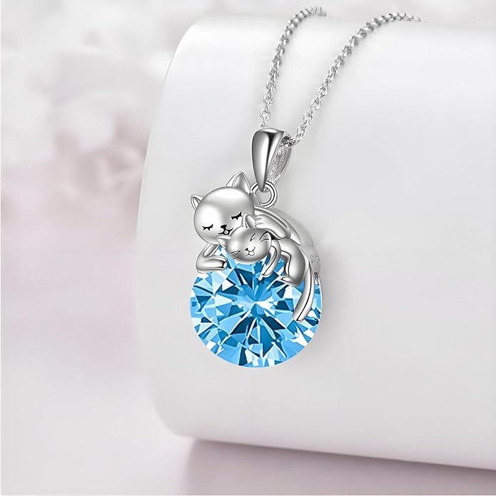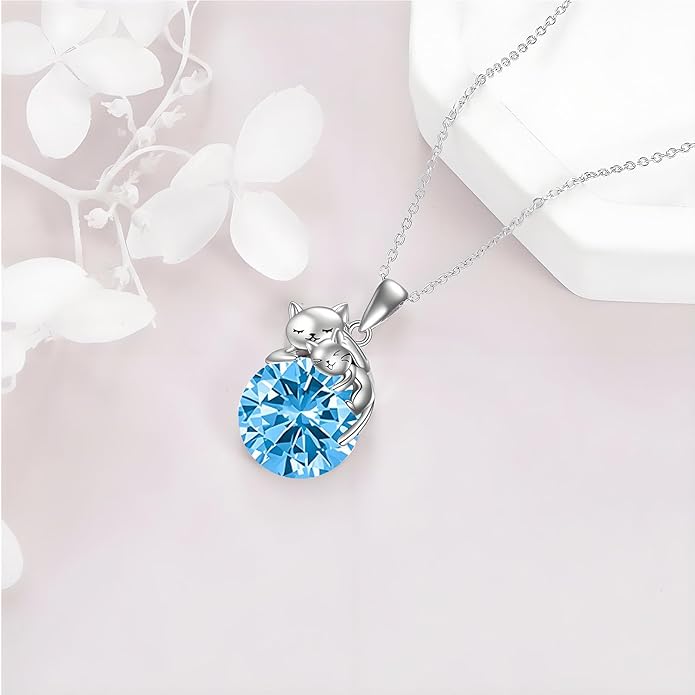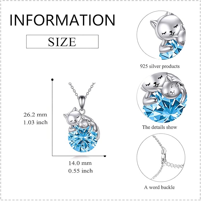 - 🐱 Design: The necklace is made of 925 sterling silver, with intricate detailing on the cats. The smaller cat is delicately cradled in the larger cat's paws, symbolizing love and protection. The December birthstone adds a pop of color and personalization to the piece. Show your loved one how much you care with this meaningful cat necklace.