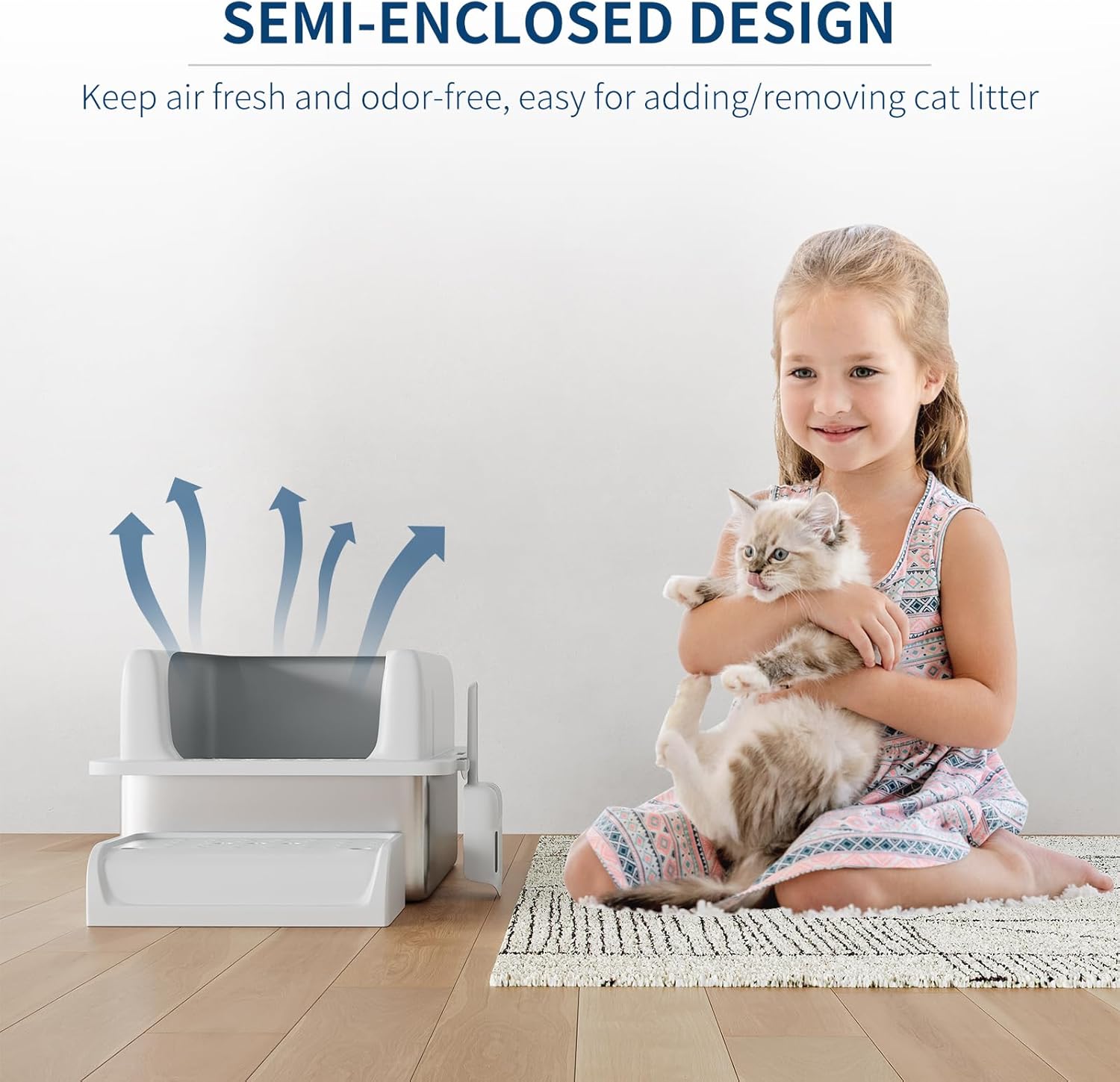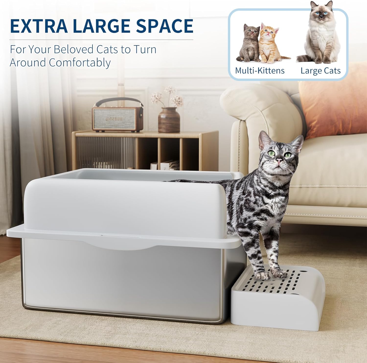 - Simplified Maintenance: Includes a litter scoop for easy cleaning. The XL size holds up to 37 liters of litter, providing enough capacity for up to 30 days of use for one adult cat—perfect for busy schedules or travel, so you can worry less about frequent litter changes.