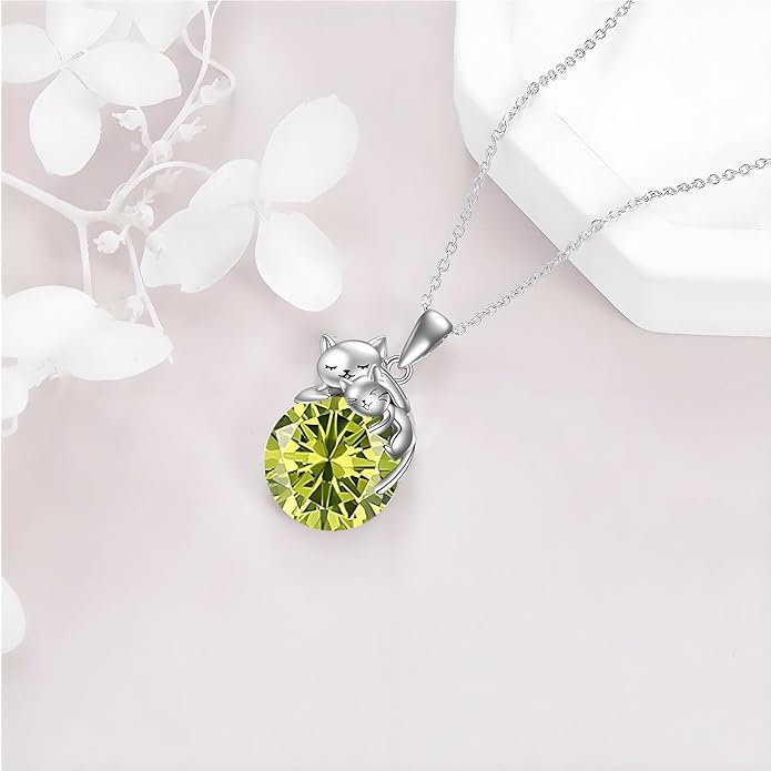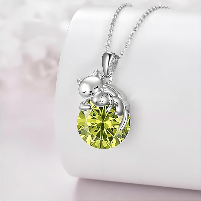 - 🐱 Design: The necklace is made of 925 sterling silver, with intricate detailing on the cats. The smaller cat is delicately cradled in the larger cat's paws, symbolizing love and protection. The August birthstone adds a pop of color and personalization to the piece. Show your loved one how much you care with this meaningful cat necklace.