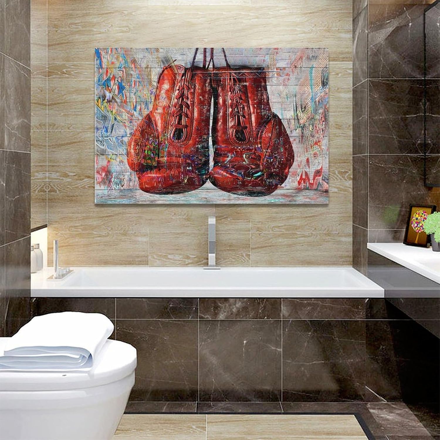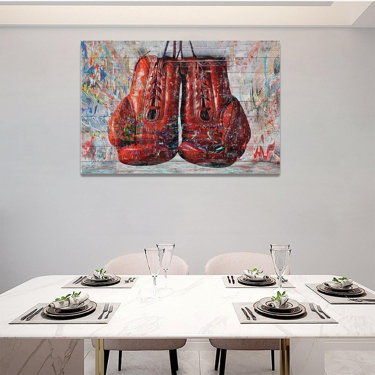 Quorin Banksy Graffiti Boxing Wall Art Red Boxing Gloves Pictures Gym Sport Wall Decor Canvas Print Painting Artwork for Gym Living Room Bedroom 16"x24"