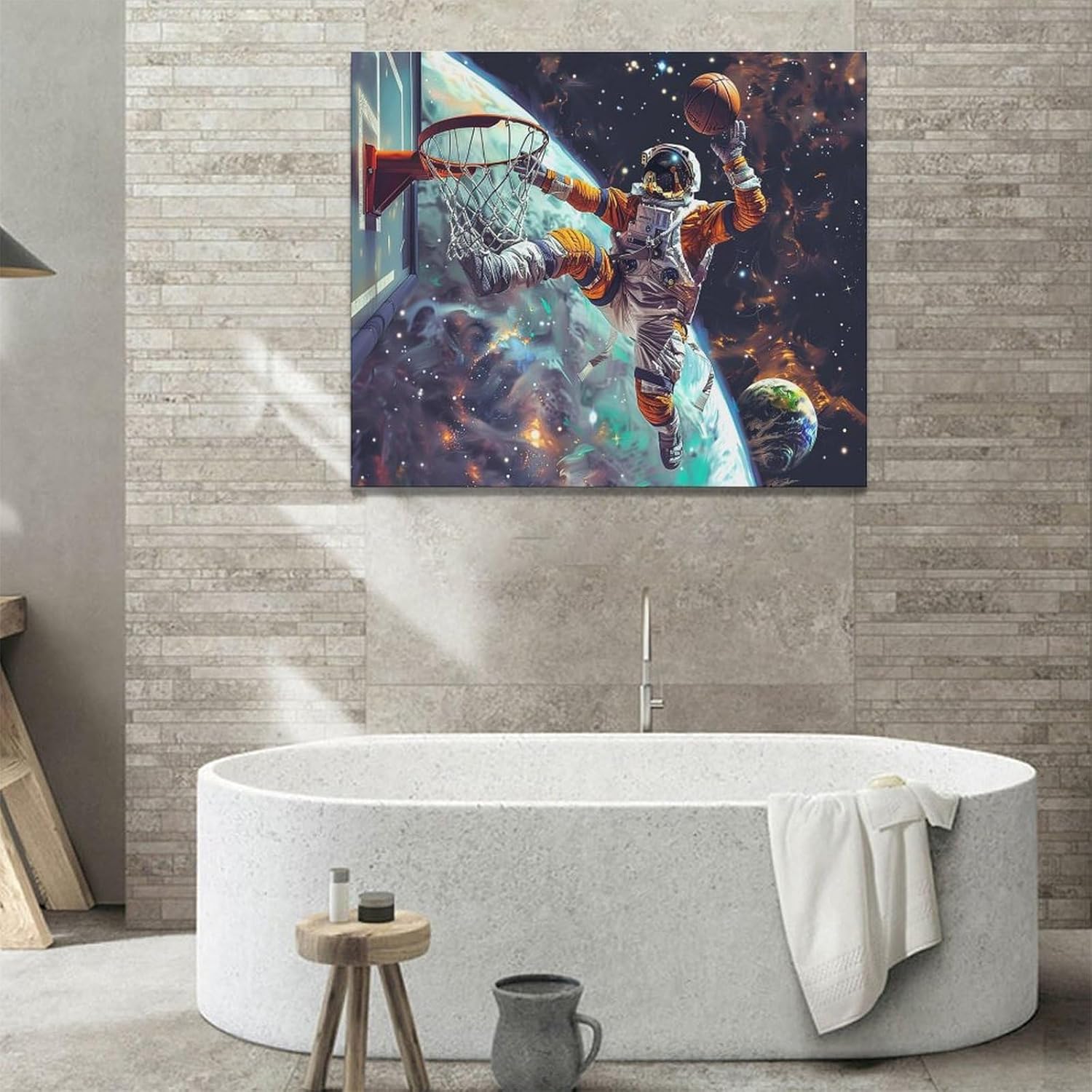 Quorin Astronaut Wall Art Funny Spaceman Basketball Pictures Space Galaxy Planet Wall Decor Canvas Print Painting Artwork for Bathroom Living Room Bedroom 20"x24"