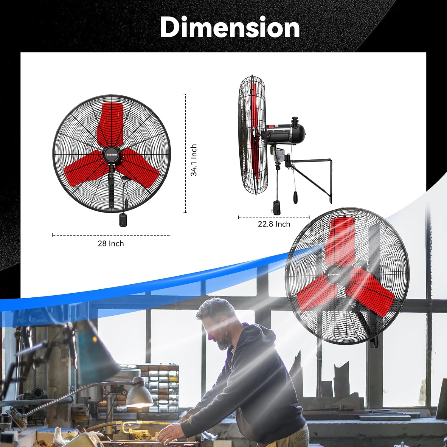 - 𝐋𝐨𝐰-𝐍𝐨𝐢𝐬𝐞 𝐃𝐞𝐬𝐢𝐠𝐧 - The heavy-duty wall fan operates at a high speed of 9500 CFM with a noise level of only 65dB, which is lower than the industry standard, creating a quieter gathering or working environment